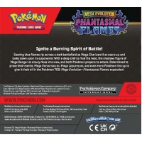 Write a reviewPokémon TCG: Mega Evolution – Phantasmal Flames Booster Box ignites the battlefield with a blazing collection of cards featuring the return of Mega Evolution Pokémon ex! Harness the ghostly fire of Mega Gengar ex, unleash the burning power of Mega Houndoom ex, and discover a host of new Pokémon ready to battle at your command. This expansion fuels fierce competition and bold new strategies for trainers and collectors alike.