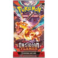 Red-hot embers illuminate the pitch-black night and sparks flare into an inferno as Charizard ex surges forth with newfound powers of darkness! The glittering Terastal phenomenon imbues some Pokémon ex like Tyranitar, Eiscue, and Vespiquen with different types than usual, while Dragonite ex and Greedent ex show mastery of their own inner strengths. Not to be outdone, Revavroom ex, Melmetal ex, and more Pokémon promise to change the course of battle in the Scarlet & Violet Obsidian Flames expansion!