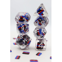 Polyamorous Flag RPG Dice Set by Foam Brain Games is a vibrant celebration of pride, love, and connection. Each die in this stunning 7-piece set features a beautifully embedded Polyamorous Pride flag inclusion, allowing you to roll with pride and showcase your identity at the gaming table.