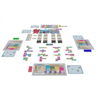 Public Market is a tile laying game for 1 to 5 players. Players will bid for turn order and then take one of two actions. Players will either go fishing or will go to market. Players will fish polynomial tiles out of the ocean grid and place them into an Ice Chest covering shrimp and avoiding ice blocks and crab.