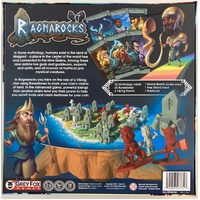 In Ragnarocks you take on the role of a Viking clan using Runestones to mark your clan’s claims of land. In the advanced game, your clan worships one of these powerful beings from another realm who lends you their power to help you outwit rivals and claim territories for your clan.