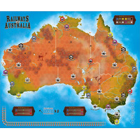 In the late 19th century, railway expansion across Australia suffered from inconsistent rail gauges. This lack of planning meant that different rail gauges must meet up at a station for passengers and cargo to switch from one line to the next before continuing on their journey. Railways of Australia recreates this dilemma in a large scale map that is truly designed for 2-6 players.