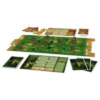 Raptor is a card driven boardgame with tactical play and some double guessing. Players use their cards to move their pawns (scientists on one side, Mother and baby raptors on the other) on the board. Every round, the player who played the lowest ranked card can use the corresponding action, while his opponent has movement / attack points equal to the difference between the two cards values. The scientists can use fire, can move by jeep on the tracks, and can even call for reinforcements, while the mamma raptor can hide in the bushes, yell to frighten the scientists, and call for her babies.