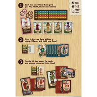 Write a reviewRescuing Robin Hood is a collaborative deck-building game that takes 45-60 min and plays 1-5 players. Robin Hood has been captured! As the leaders of the Merry Band you have only 5 days to come to his rescue, using all the Wit, Brawn and Stealth you can muster.