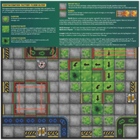 Robo Rally: Contamination consists of three double-sided game boards featuring new elements like radiation, radioactive waste, and one-way walls, along with five new upgrade cards.
