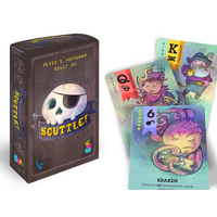 'Scuttle!' is a card game for 1-5 valiant pirates, suitable for players as young as 6. Based on the classic game Cuttle, Scuttle! has been infused with the drama of the high seas thanks to creative updated rules by Peter C. Hayward.