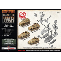 The Sd Kfz 250 8cm/7.5cm/2cm Scout Platoon provides German forces with a fast, flexible reconnaissance element ideal for early- and mid-war Flames of War armies. These light half-tracked armoured vehicles are designed to scout ahead of the panzer divisions, gathering intelligence, screening advances, and exploiting gaps while avoiding prolonged engagements with heavier enemy forces.