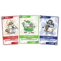 Players take turns drawing cards to collect matching sets of disguised Sheep and a variety of powerful Action cards. When a player has collected 3 Sheep of a kind, they must be placed face up on the table immediately. This set of 3 Sheep is called a Flock. In a 4 player game, the first person to collect 4 unique Flocks is the winner.
