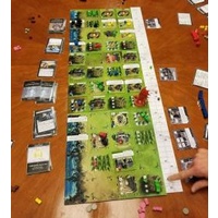 During the game, players send out scouts to collect resources, recruit soldiers to protect their scouts, build structures to gain powers, and earn victory points. Story cards and individual tasks add intrigue and complexity to game play.