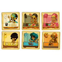 When they have enough in hand, a player can sell a set of at least 3 tiles of the same type. These tiles will earn them Victory Points at the end of the game, depending on both their quantity and the amount of Scarabs that they feature. A player can also use a Character to benefit from its powerful special ability.
