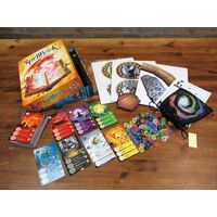 In SpellBook, each player, accompanied by a familiar, possesses a grimoire and collects Materia to master spells and feed their familiar. The game provides pre-drawn spell sets for use in the early rounds, but soon players start drawing spells randomly or create their own spell combinations that are common to all players. Each spell combination gives an effect that lasts the rest of the game, and the more ingenious the combination, the more powerful the effect. As the rounds progress, the game becomes a different experience every time, with more than 2,100 spell combinations being possible.