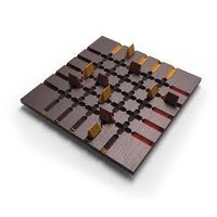 Each player starts with their five pieces in troughs on their side of the game board, with players sitting perpendicular to one another. When you move a piece, you move it a distance based on the strength indicated in the trough that you're leaving. Once the piece has made its way across the board, you move it back based on the strength on the other side. If you pass over an opposing piece while moving, then that opposing piece must return to its base.