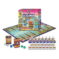 Story Time Backgammon is a unique board game that uses sillly stories, colourful illustrations, specialised game pieces, abd a custom board to teach young children one of the world's oldest, most beloved strategy games.
