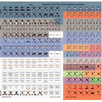 - Scale and Map: The beautifully detailed square-grid map covers Europe from London to East Prussia and south to the Balkans and central Italy. Each square represents 50 miles (81 km), and each game turn equals one year. Military units represent 2,500–10,000 troops, reflecting the professional armies and grand manoeuvres characteristic of 18th-century warfare.
