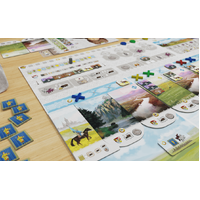 Each year, the players must move eastward across the landscape. They can spend horses if they wish to travel further. Once they have advanced, they may take a basic action, such as trading or collecting furs or coins. Lastly, they may take more advanced actions such as visiting a village, setting up a yurt, taking a Tsar's wish (card), setting up a hunting lodge, or buying a landscape field. All of these actions — combined with exploring and some storytelling along the way — earn players victory points at the end of the game.