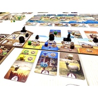 Suna Valo features an innovative purchasing mechanism. Secure the right cards before your opponent does, snatch up the more valuable ones, and host prestigious events! Each time you acquire a new card for your farm, you activate an entire column of cards, causing your farm to flourish. However, you must also earn the resources to cover the costs of these cards.