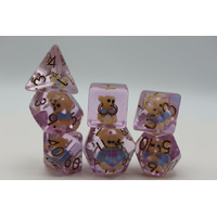 - Complete 7-piece RPG set: Includes D4, D6, D8, D10, D%, D12, and D20 – all featuring matching teddy bear inclusions for a cohesive and charming appearance.