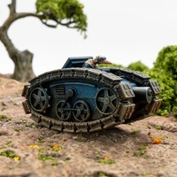 The first Chyweethls clattered into service in the late 1640s, and some form of the venerable machine has served under the Coftyran Mechanical Corps' banner ever since. While the modern Chyweethl shares little with its early ancestors beyond its hunched silhouette and signature chained-pedrail system, its lineage is unmistakable. Over 140 years, it has seen seven major revisions and untold minor adjustments - each one a tinkerer's fingerprint on Coftyr's armored doctrine. True to Coftyran design philosophy, the Chyweethl eschews a turret entirely, instead channeling its mass into a heavier main gun. This trade-off demands remarkable coordination from its crew; the driver, commander, and gunner must train together tirelessly, as the limited gun traverse means the driver must delicately "steer" shots into place by feathering the throttles. Though the chained-pedrail grants impressive traction and rugged cross-country resilience, it loathes paved roads - just a few miles on smooth stone can chew through the pedrails and scar the track. As a result, redeploying Chyweethl-equipped units over long distances remains a logistical headache - one more quirk in a machine full of them.