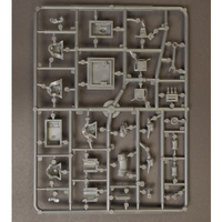 This hard plastic box set includes two frames with all the parts to build one Chyweethl tractor and crew.