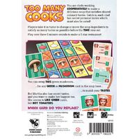 Write a reviewToo Many Cooks is a co-operative hidden information card game about fussy chefs cooking soups together. It is played in 3 rounds of 5 minutes. You can play in one of 3 difficulty settings; easy, moderate & hard, or you can play through all of them in an hour long session.