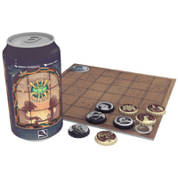 On a turn, choose one of your bottle caps, count the number of bottle caps of either color that are on adjacent spaces (whether orthogonal or diagonal), then move that bottle cap exactly that many spaces in a straight line either diagonally or orthogonally. You cannot leave the board, jump or land on a bottle cap, or land on your bottle.