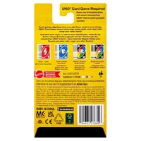 UNO: Swap Pack Add-On has 16 cards that bring new excitement and unpredictability to the classic UNO card game by introducing unique card-swapping mechanics. Cards such as Swap 1 allow players to exchange a random card with another player's hand. Refresh Hand enables players to completely discard their current hand and draw an equal number of new cards from the draw pile, drastically changing their game strategy. The Wild Force Trade lets a player choose two participants, including themselves, to trade their entire hands, followed by selecting the next play color. Wild Pass Hands dramatically reshapes gameplay by having all players pass their hand to the next player in the current order, again allowing the initiating player to choose the continuing play color. This dynamic add-on makes strategy shifts and sudden game changes frequent, maintaining constant player engagement.