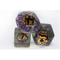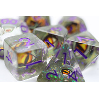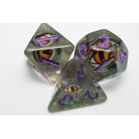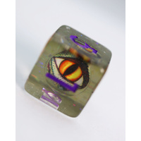 - Striking dragon eye inclusions: Each die features a vivid serpentine eye surrounded by swirling green resin, evoking the essence of venom, power, and mystery.