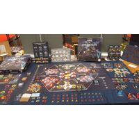 War of Civilizations is a 4x strategy board game set in the year 2050 on a climate change-affected dystopian earth. Players take on the role of clan leaders and compete to gain mystical powers, acquire resources, and build powerful war fleets to conquer land and defeat rival clans. The game requires players to balance their acquisition of powers and resources with their warfare tactics, while navigating the challenges of a harsh, post-apocalyptic world.