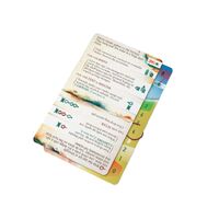 Washed Ashore is a story-based solo adventure in which the player takes the role of the game's main character who is shipwrecked and stranded on a deserted island. The player reads parts of the story on cards and makes decisions related to them, the consequences of which are revealed to the player immediately or after some time.