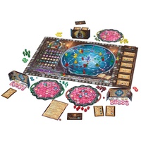 - Move your token around a pentagram to collect points and to acquire bonus hex tiles; you can use these tiles immediately for actions or place them in your cauldron to make future tile placement more valuable.