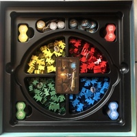 As established representatives of your guild, you gather around an ancient sacred stone, the significance and magical powers of which are known to adepts only. Each player occupies one of the four towers around the Witchstone and starts from there. Create your magic spells with the help of your cauldron, and put a network of magic energy around the stone. Send out your witches, scoop the magic crystals out of the cauldron, make use of the pentagram and the magic wand, and keep an eye on the prophecy scrolls in order to ensure victory.