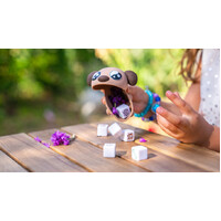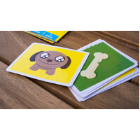To play, place the dice in the doggy shaker, give it a shake, and roll the dice. Match your dice with the picture cards. Bones are super lucky, but players must watch out for stinky mud puddles. A few lucky rolls and a few smart choices will win the game!